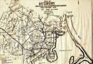I refer almost everyone who comes to the Archives to the “Fish Notes” and “Fish Map.” While there are certainly errors that have been pointed out by historians over the years, the overall work is quite impressive and very comprehensive. He was lucky enough to live at time when many of the “cellar holes” of the original Duxbury settlers were still visible. His map carefully plots out where each cellar hole was located and to whom it belonged. For those decendents and genealogists looking for where exactly their ancestors lived, the map and key are invaluable.