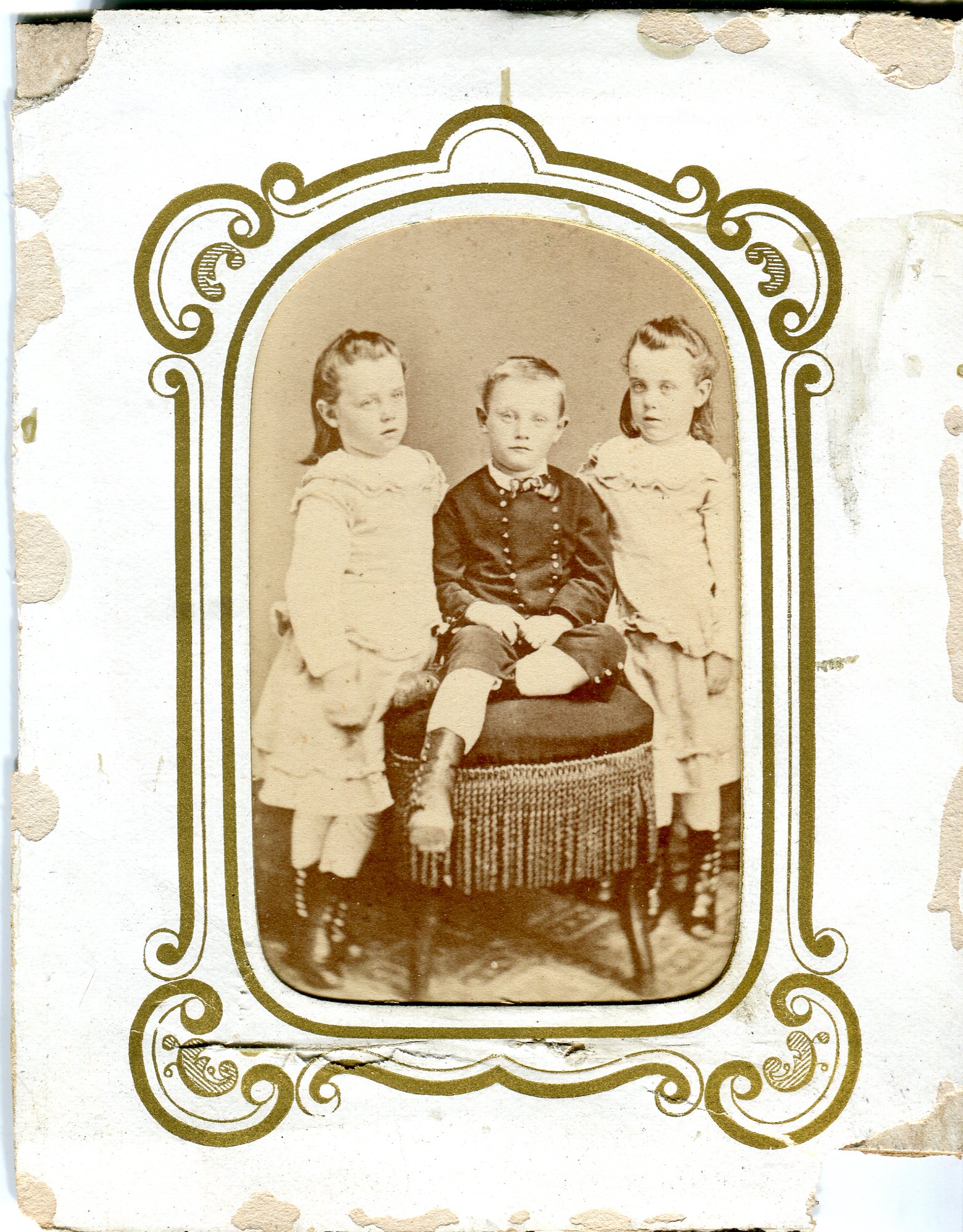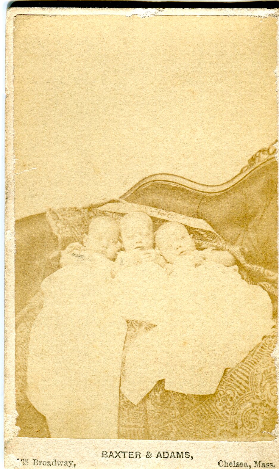 The survival rate of triplets in the mid-19th century was not high – neither for mother nor children. A home-birth with the assistance of the local doctor was dicey at best. Medicine of the day was also woefully inadequate to assist these undersized or premature babies once they were born. So, it is surprising that Catherine Drew Delano (1833-1919) was able to produce three healthy babies on a cold winter’s day in January, 1868. The children – two girls and a boy – were Caroline S. Delano (1868-1955), Grace T. Delano (1868-1935) and Benjamin Franklin Delano (1868-1920). What makes their coming into the world even more special, are the four photographs that follow them from infancy to their teenage years. A remarkable record of their early life.
