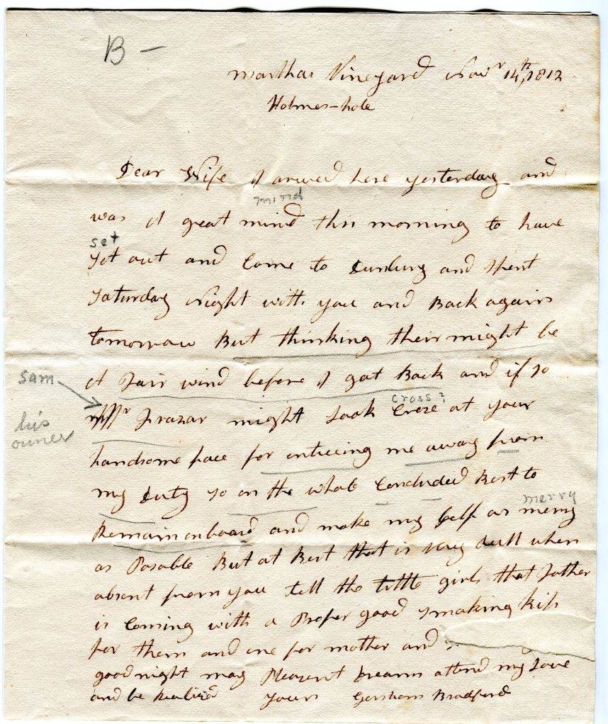 At the time, the Industry was commanded by Gershom’s brother, Capt. Gamaliel Bradford, who was also Sally’s brother-in-law. Sally signed her letter “your friend and your sister,” reflecting the close family ties that already connected them.