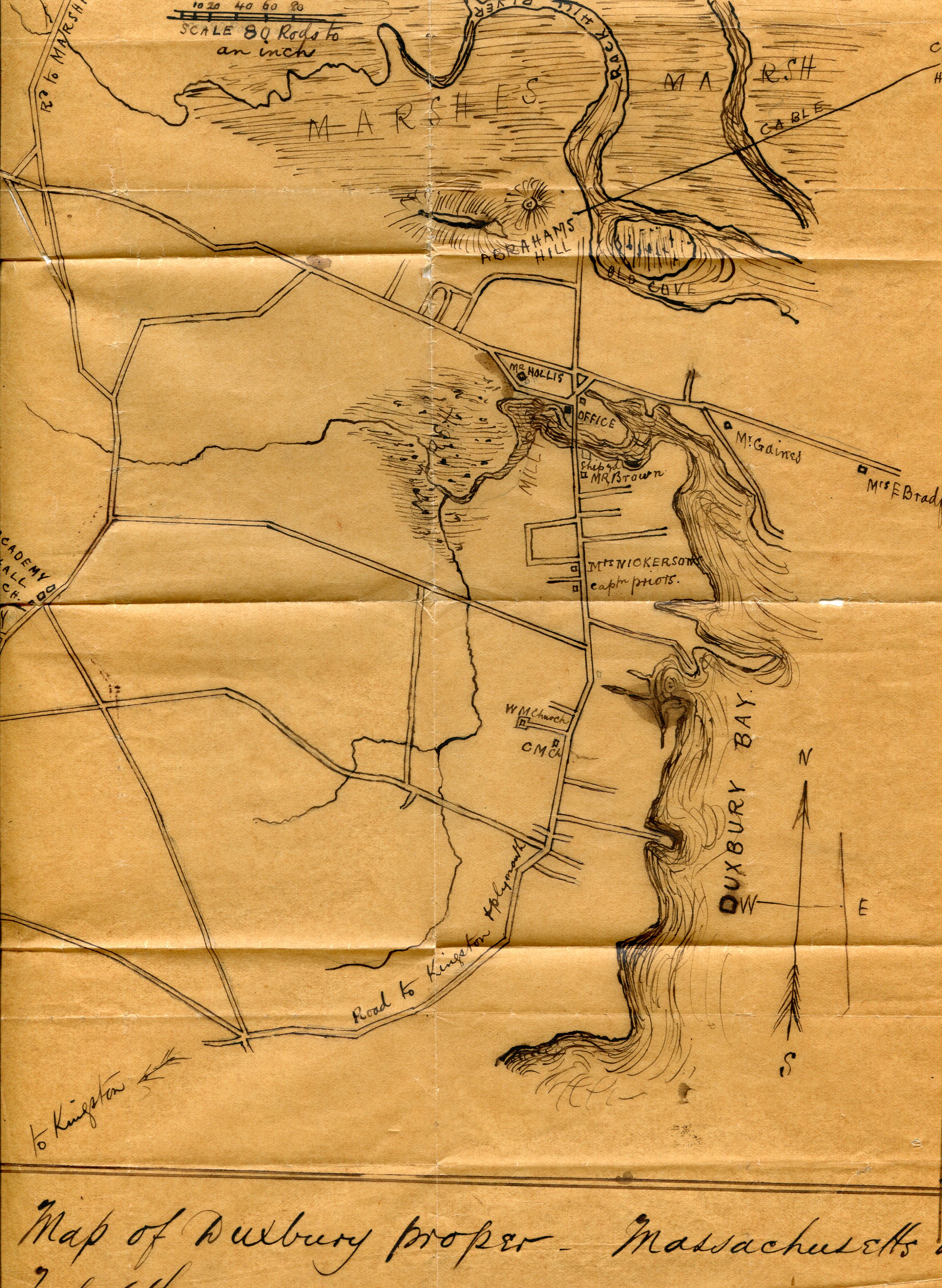 G. M. Richardson was most likely part of the Richardson family that owned a large estate adjacent to Sarah F. Sampson’s house. The estate was once owned by George Partridge, one of Duxbury’s most prominent citizens and inherited by George P. Richardson. Martha R may be Martha Richardson (b. 1815).